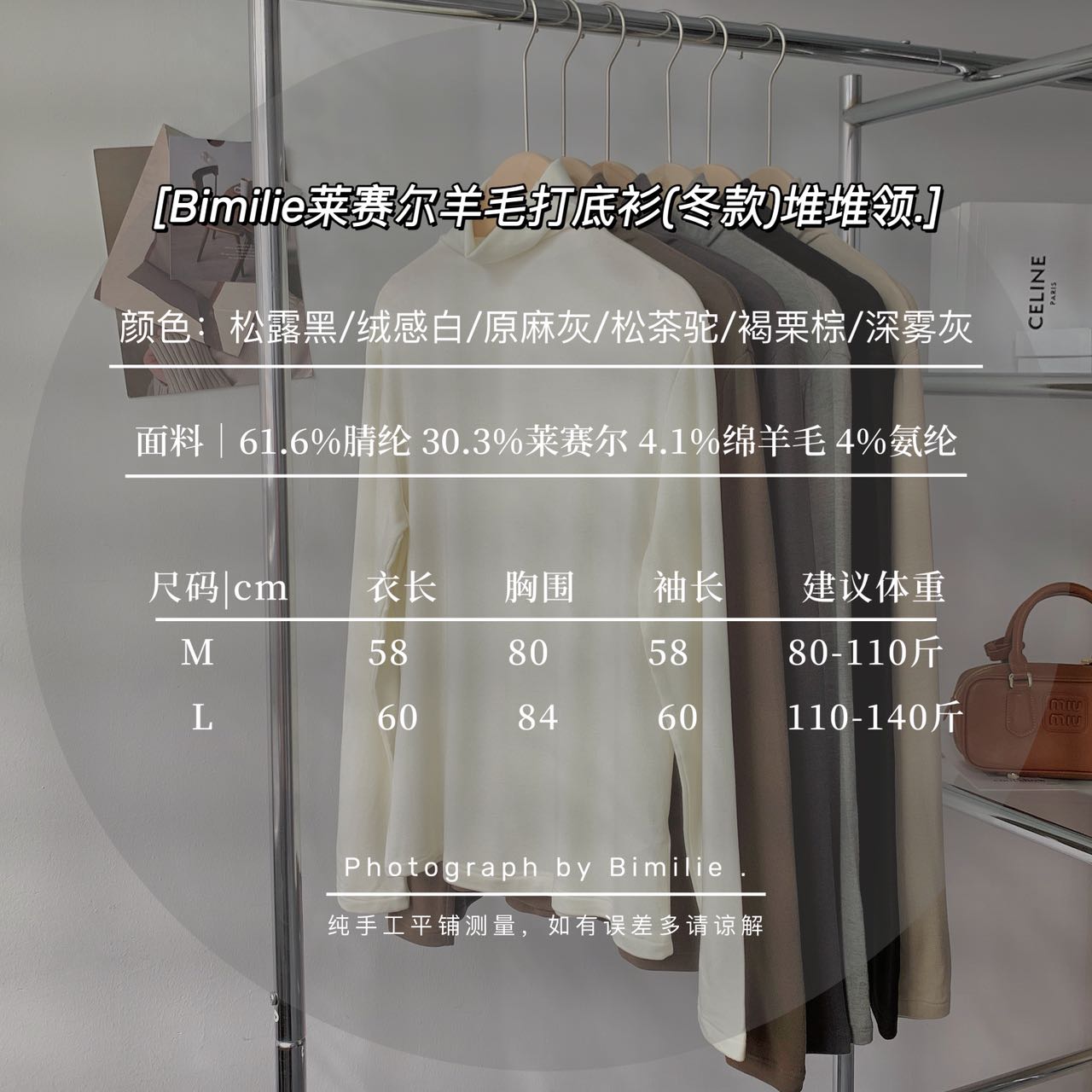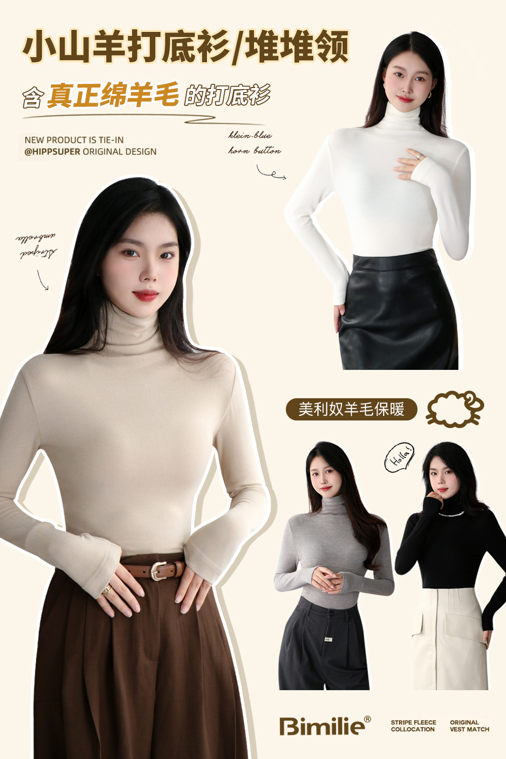 Bimilie 冬款莱赛尔羊毛打底衫堆堆领:高级感与舒适感的完美结合